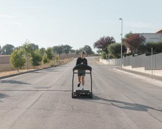 Fuga is a performance based on running, which becomes a metaphor for a paradoxical existential condition: that of someone who moves while remaining still, fleeing from themselves and their circumstances, in search of a well-being that is always just out of reach. A treadmill training session becomes the occasion for an imaginative drift, accompanied by sounds drawn from baroque music and the world of entertainment, capable of rewriting the very meaning of athletic practice. With this project, the artistic duo Palermo/Petrosino continues their exploration of the nature of performative acts starting from everyday life, giving shape to a minimal choreography of concrete gestures, between reality and fiction.
