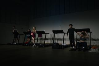Ouverture is an a cappella performance piece for a double quintet — five singers and five treadmills. Set in a threshold-like space-time, the work explores the performative tension that precedes the event — both of the show and of life itself. The preparations and rituals of opera intertwine with those of sports and wellness practices, in search of a wellbeing, or a form, that is always still to come. Reality and fiction thus converge in the voices of the singer-performers, questioning the horizons, escape routes, and gazes that shape contemporary life.